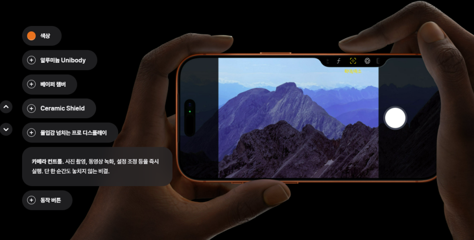 유연한 프레임 조절: 사진과 동영상 촬영 시 iPhone을 움직이지 않고도 탭하여 시야각을 넓히거나 세로에서 가로로 전환할 수 있다.
